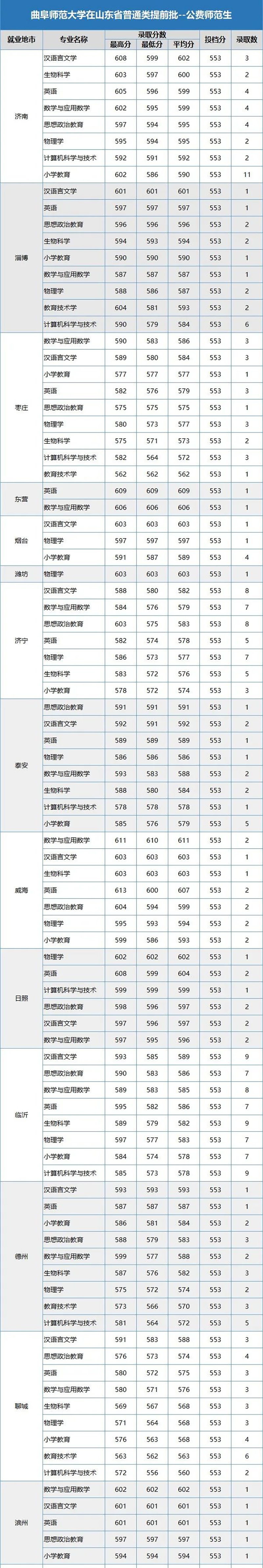今天带大家一起来看看这18所大学2023年在山东招公费生的录取情况