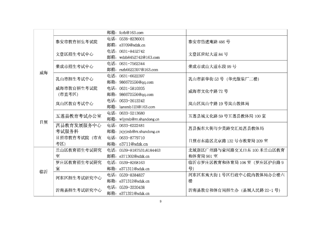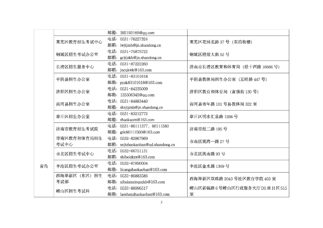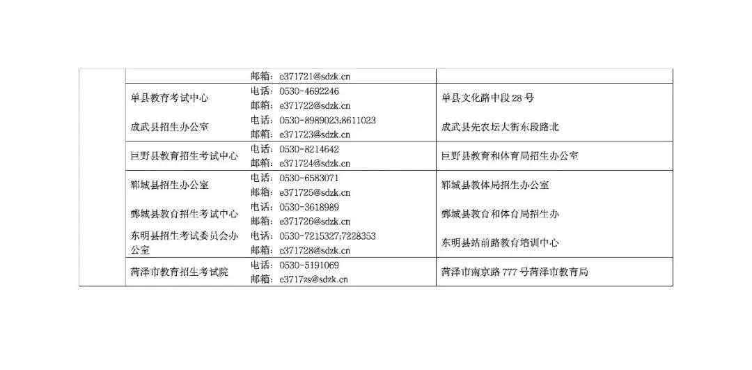 每逢考试,社会上总有不法分子通过各种方式和手段进行诈骗犯罪活动,骗取考生钱财。请各位考生严格遵守考试纪律,诚信应考,不轻信不法分子散布的“助考”信息,不参与不法分子组织的“助考”犯罪活动。我省艺术类专业统考各类别仅按《山东省2024年普通高等学校招生艺术类专业统一考试公告》规定的时间组织一次考试,并未组织也不允许第三方组织任何形式的跨区域“模拟考试”。如发现涉考违法违规行为,请广大考生及时向公安机关报警并向我院举报(我院举报电话0531-86162757,邮箱:jubao@sdzk.cn,政策咨询电话:0531-81916023)。考生因考试问题需要咨询,可及时与高考报名所在县(市、区)教育招生考试机构或主考院校联系。各主考院校、各市、县(市、区)咨询电话及邮箱见附件1。