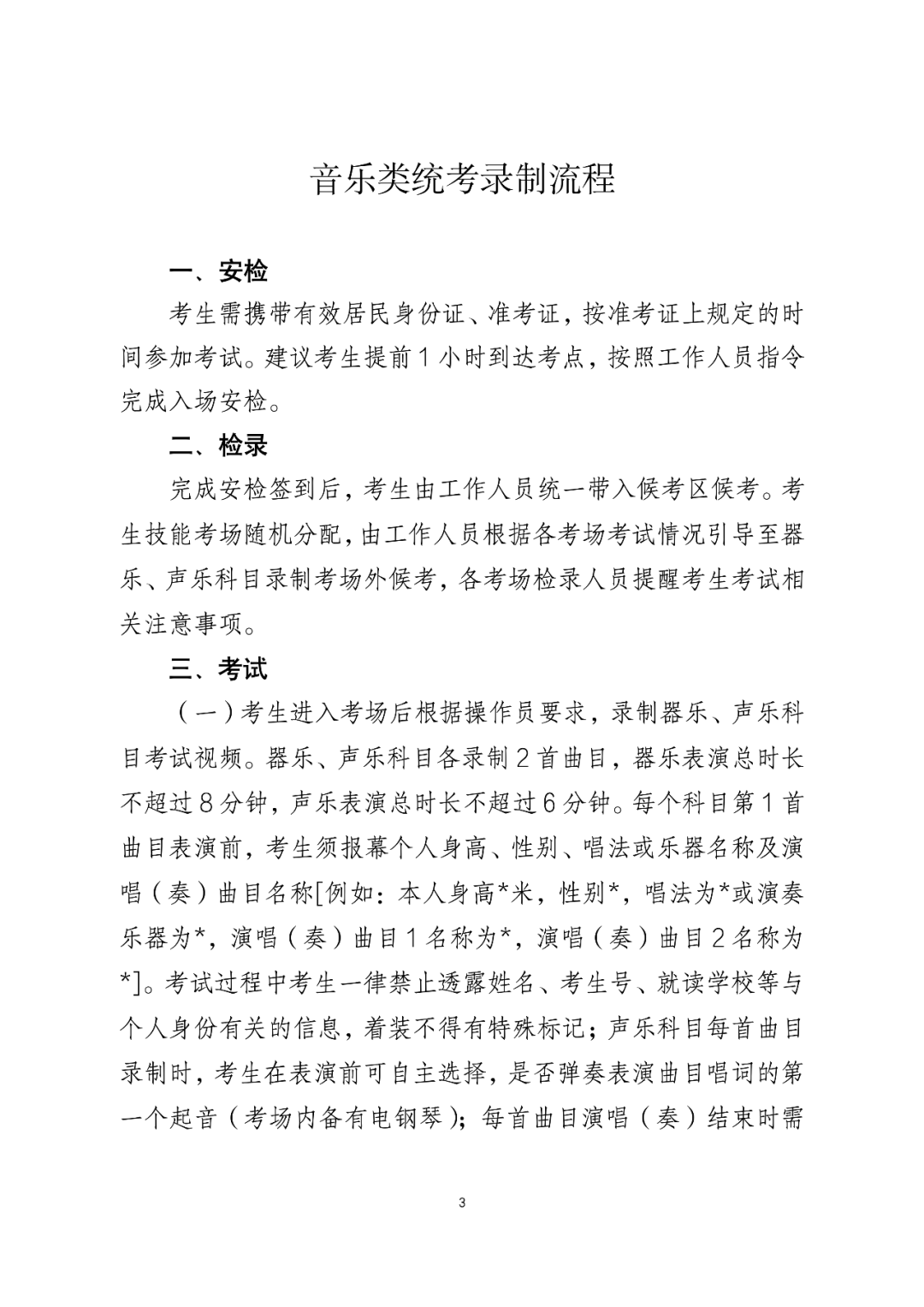 2.舞蹈类统考、播音与主持类统考、音乐类统考、表(导)演类统考考试(录制)流程