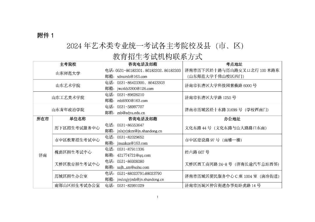 附件:1.2024年艺术类专业统考各主考院校及县(市、区)教育招生考试机构联系方式